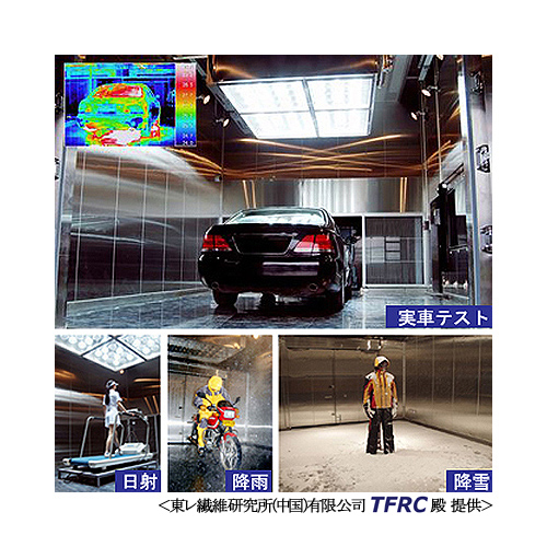夏の日差しと一言でいっても、光の強さと熱さがあります。また、車は時速100km以上の風を受けることもあります。単なる自然環境を再現するだけではなく、実際に車が走っている状況を作り出せるので、精度の高い性能チェックができます。